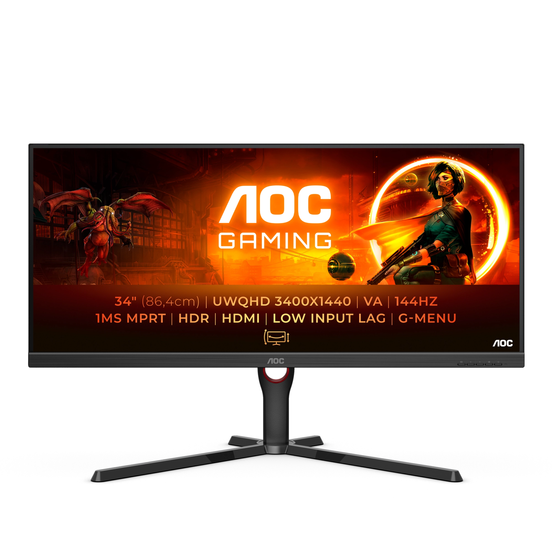 Monitor WQHD VA da 34" con frequenza di aggiornamento di 144 Hz, GtG da 1 ms e AdaptiveSync