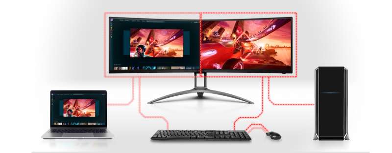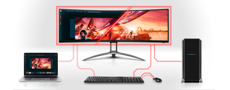 Curved 49” ultra-wide screen monitor (32:9) with DisplayHDR™ 400, Shadow Control and 120 Hz frame rate. The excellent image quality allows for more details, clear graphics and gaming-action wherever you look. The PbP feature lets you display and control the contents from two different PC systems.