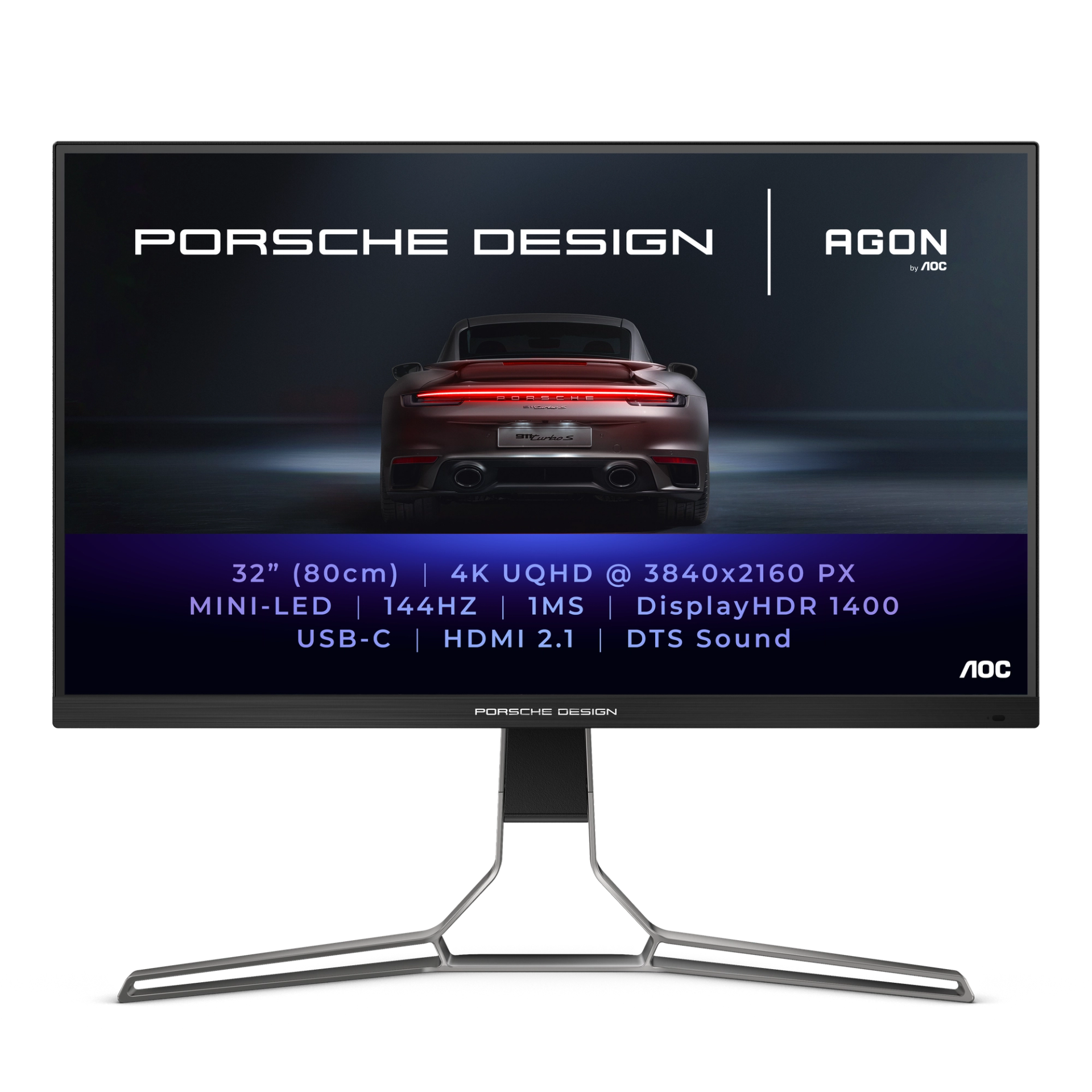 The Porsche Design AOC AGON PRO PD32M sets new standards in the field of gaming monitors. Frameless 32" mini LED display for gaming, streaming, and graphics. 4K display resolution, 144 Hz refresh rate, Display HDR 1400-certified display, and wide color space of 97% DCI-P3.