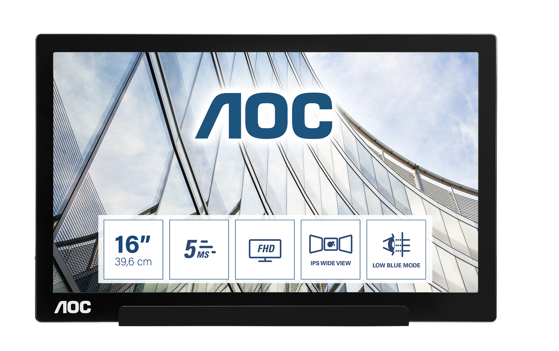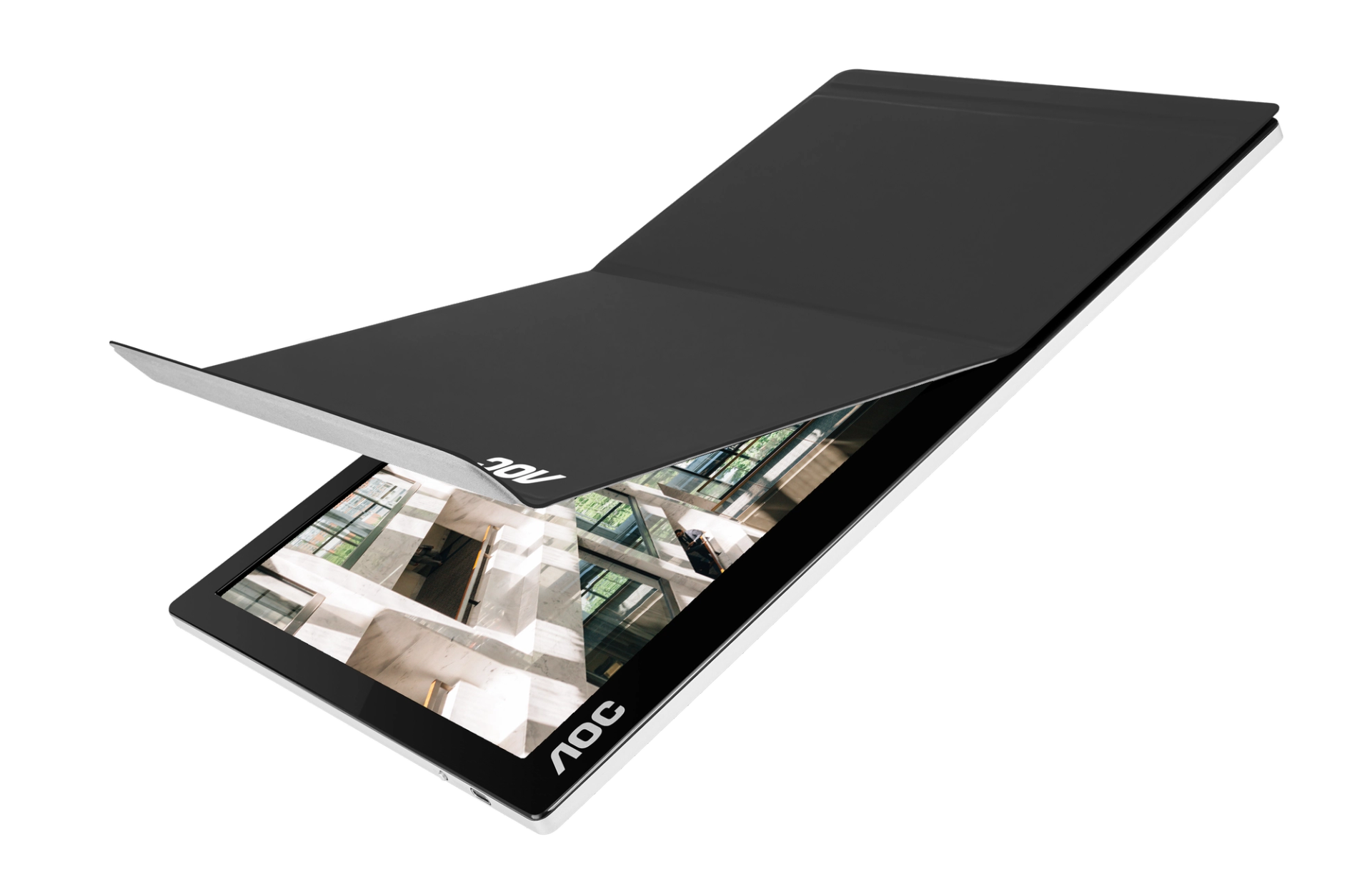 The latest USB-C powered portable display from AOC, I1601FWUX boasts a vivid 15.6” IPS display with wide viewing angles (160/160°) and 5 ms GtG. Includes smart cover and auto-pivot mode.